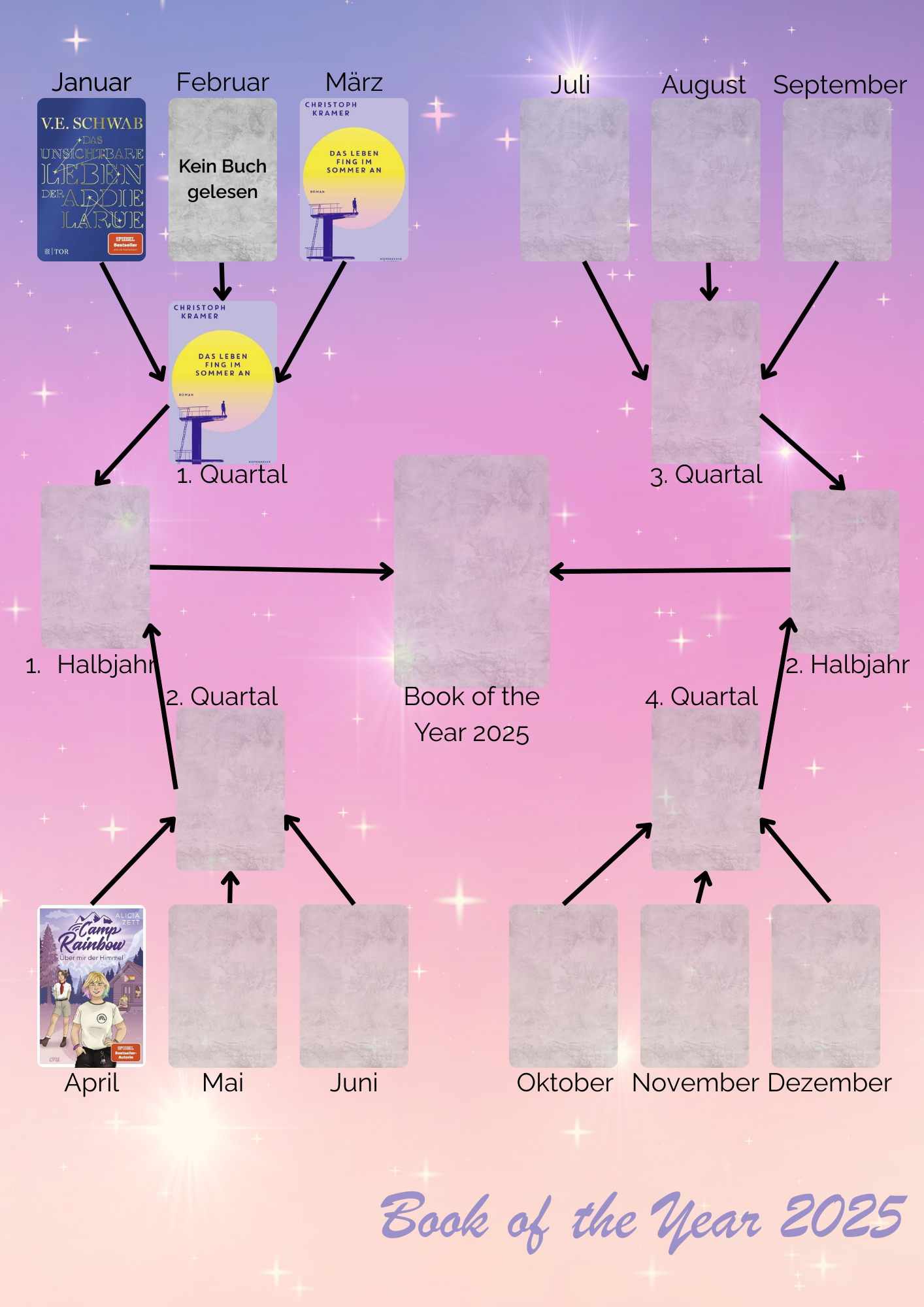 Dieses Jahr möchte ich mein persönliches Buch des Jahres ermitteln. Deshalb habe ich mir eine ganz simple Grafik dafür gebastelt.