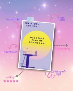 Nun durfte ich den nochmal mit Christoph Kramer und seinen Freunden erleben, doch nicht nur den Sommer, auch die Reise in die Zeit des ersten Verliebt sein, der ersten Enttäuschungen und die ersten Abenteuer dadurch.